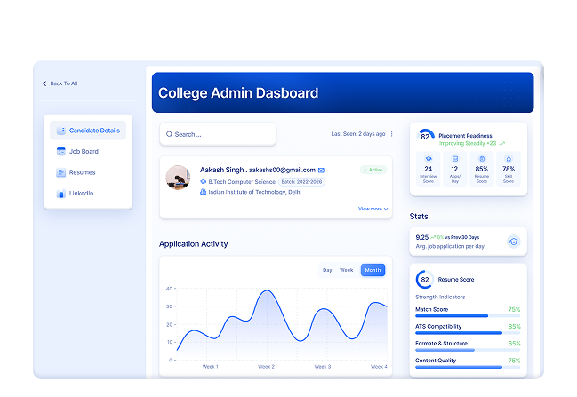 AI-powered tools designed to handle the full placement lifecycle — from resume building to offer tracking — so your team focuses on strategy, not spreadsheets.